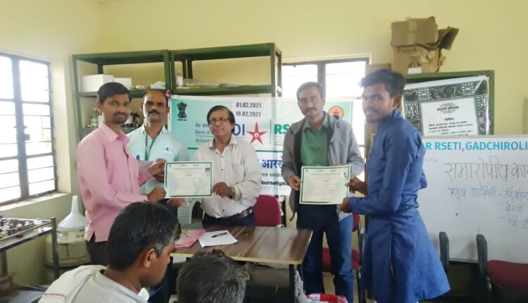 आरसेटी पूढील दोन वर्ष प्रशिक्षणार्थाच्या पाठीशी राहून सर्वतोपरी मदत करण्याचे आश्वासन कार्यक्रम समन्वयक हेमंत मेश्राम यांनी केले .