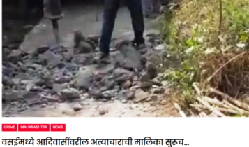 लोकस्पर्श न्यूज नेटवर्क वसई, दि २५ नोव्हेंबर : विरार पूर्वेच्या टोकरे कातकरी पाडा येथील गरीब आदिवासी महिलांना शिवीगाळ आणि धक्काबुक्की करून रस्ता खोदल्या प्रकरणी अखेर आरोपी विकास नाईक आणि त्याच्या ६ गुंडांविरोधात रात्री उशिरा गुन्हा दाखल करण्यात आला आहे. सदर प्रकरणाला सर्वप्रथम लोक स्पर्श न्युजने वाचा फोडली आणि याबाबतचे वृत्त प्रसारित केले. आदिवासींवर झालेल्या अत्याचाराची … Continue reading ‘लोकस्पर्श’ न्युज चा दणका… आदिवासी महिलांना शिवीगाळ आणि धक्काबुक्की करून रस्ता खोदल्या प्रकरणी अखेर आरोपींविरोधात गुन्हा दाखल…