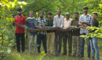 चंद्रपूर जिल्ह्यातील ब्रम्हपुरी तालुक्यात 12 फुटी अजगर पकडला.