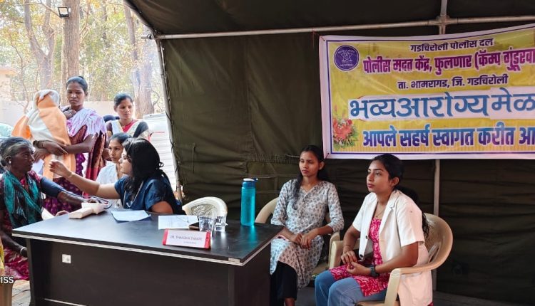 गडचिरोली : अतिदुर्गम आणि नक्षलप्रभावित भागातील नागरिकांपर्यंत आरोग्य सेवा पोहोचविण्याच्या ध्येयाने गडचिरोली पोलीस दलाने नवनिर्मित पोमके फुलणार (कॅम्प गुंडूरवाही) येथे भव्य मोफत आरोग्य तपासणी शिबिराचे आयोजन केले. या उपक्रमातून कोपर्शी, फुलणार, गुंडूरवाही, पोयरकोठी व परिसरातील सुमारे २१० नागरिक व विद्यार्थ्यांची तज्ञ वैद्यकीय पथकाकडून सखोल तपासणी करण्यात आली.
