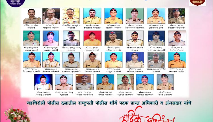 गडचिरोली पोलीस दलातील ३१ अधिकारी-अंमलदारांना राष्ट्रपती पोलीस शौर्य पदक