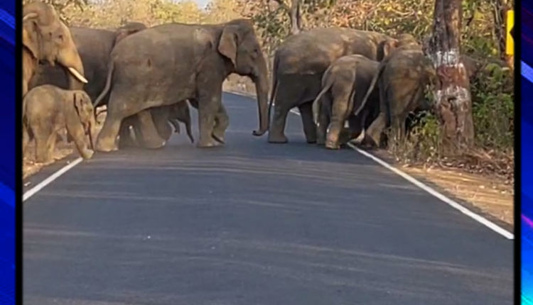 हत्तींनी ओलांडला चामोर्शी-गडचिरोली मार्ग ; परिसरात भीतीचे वातावरण
