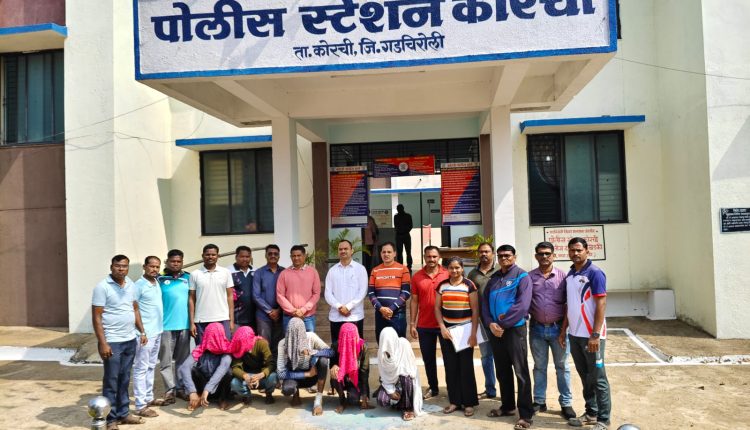 या प्रकरणात आरोपी शानु पठाण (वय ३६), पुंकेश बोरकर (वय ३२), चंद्रशेखर गुज्जेवार (वय २७), धनपाल मडावी (वय २१), सर्व रा. जांभूळखेडा, ता. कुरखेडा, जि. गडचिरोली तसेच सोनाली कवंर (वय २५, रा. जेठकन्हार, ता. डोंगरगड, जि. राजनांदगाव, छ.ग.) यांना दि. ४ फेब्रुवारी २०२६ रोजी अटक करण्यात आली. सर्व आरोपींना न्यायालयात हजर केले असता न्यायालयाने त्यांना सहा दिवसांची पोलीस कोठडी सुनावली आहे. पुढील तपास पोलीस निरीक्षक शैलेंद्र ठाकरे, पोस्टे कोरची हे करीत आहेत.