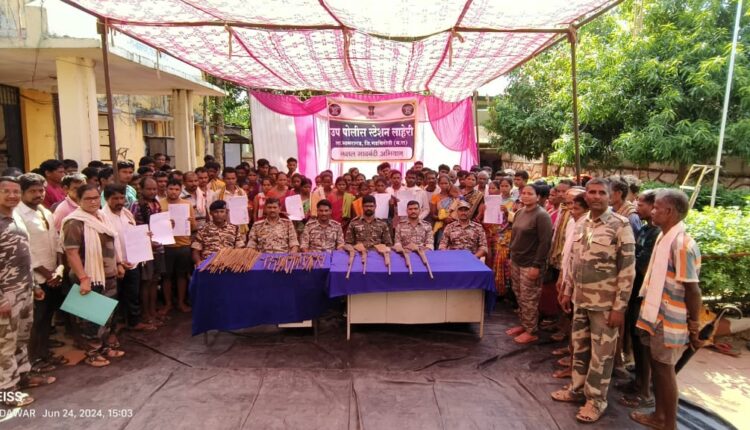 यावेळी वरील पाचही गावातील नागरिकांनी माओवाद्यांनी पोलीस पथकाला नुकसान पोहचविण्याच्या उद्देशाने जंगलात लपवून ठेवलेले पाच भरमार बंदूक तसेच जंगलात खड्डे करुन त्यात पुरुन ठेवलेले धारदार लोखंडी 200 ते 300 सलाखे (Spikes) काढून आणून पोलीस दलाकडे सुपूर्द केली. यासोबतच पोस्टे धोडराज हद्दीतील मौजा नेलगुंडा या गावातील नागरिकांनी दिनांक 14 जून रोजी गावात नक्षल गावबंदी केल्याचा ठराव पोस्टे धोडराज येथे सादर केला होता. त्यामुळे आज येथील गावकयांनी पोस्टे धोडराज हद्दीत सुरक्षा रक्षक दलांना नूकसान पोहचविण्याच्या उद्देशाने जंगलात खड्डे करुन त्यात पुरुन ठेवलेले 450 सलाखे (Spikes) व कुकरमध्ये ठेवलेल्या आयडी सदृश वस्तू पोस्टे धोडराज येथे जमा केले.