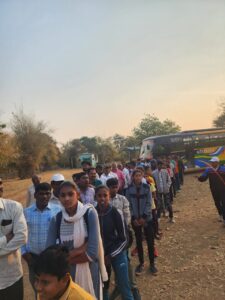 व्याघ्र पर्यटनाचा आनंद त्यांच्या चेह-यावर झळकत होता राज्यस्तरीय शालेय मैदानी क्रीडा स्पर्धा बल्लारपूर येथील तालुका क्रीडा संकुलात 11 ते 13 मार्च या कालावधीत आयोजित करण्यात आल्या होत्या. येथे आलेला प्रत्येक खेळाडू हा वाघासारखाच आहे. त्यामुळे वाघांना वाघाचे दर्शन घडविणे, हे आपले कर्तव्य आहे, असे वनमंत्री श्री. मुनगंटीवार यांनी भाषणाच्या सुरवातीलाच घोषित केले. त्यानुसार वन विभागाने चार मोठ्या बसेस व 12 जिप्सी गाड्यांचे नियेाजन केले. 12 मार्च रोजी सकाळच्या पहिल्या सत्रात 90 जण तर दुपारच्या सत्रात 90 अशा एकूण 180 जणांना ताडोबा दर्शन घडविण्यात आले. यात 150 खेळाडू व 30 पालकांचा समावेश होता.