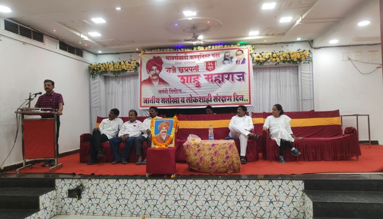 आरमोरी (जि. गडचिरोली), २६ जून : बहुजनांच्या सामाजिक उत्थानाचा इतिहास घडविणाऱ्या राजर्षी छत्रपती शाहू महाराज यांच्या १५६व्या जयंतीनिमित्त मार्क्सवादी कम्युनिस्ट पक्षाच्या वतीने आरमोरी येथे ‘जातीय सलोखा आणि लोकशाही रक्षण’ या विषयावर सखोल विचारमंथन करत जयंती उत्साहात साजरी करण्यात आली. सामाजिक समतेचा विचार रुजविण्याचा आणि संविधान मूल्यांचे भान ठेवण्याचा या कार्यक्रमामागे प्रयत्न होता.