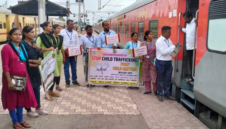 मुंबई, 1ऑगस्ट 2023 ; जागतिक मानवी तस्करी विरोधी दिनानिमित्त, रुरल अँड अर्बन डेव्हलपमेंट युथ असोसिएशन, गडचिरोली अंतर्गत चंद्रपूर येथील असेस टू जस्टिस प्रकल्पान्वये, जिल्ह्यातील हॉटस्पॉट असलेले ठिकाण जसे, रेल्वे स्टेशन, बस स्टॅन्ड, बाजारपेठ, चंद्रपूर व बल्लारपुर ही शहरे आदी तालुक्यातील ठिकाणी बालतस्करी विरुद्ध जनजागृती मोहीम राबविण्यात आली. यावेळी माहिती फलके, पत्रके वितरीत करुन तसेच घोषवाक्य देत प्रभात फेरी काढण्यात आली.