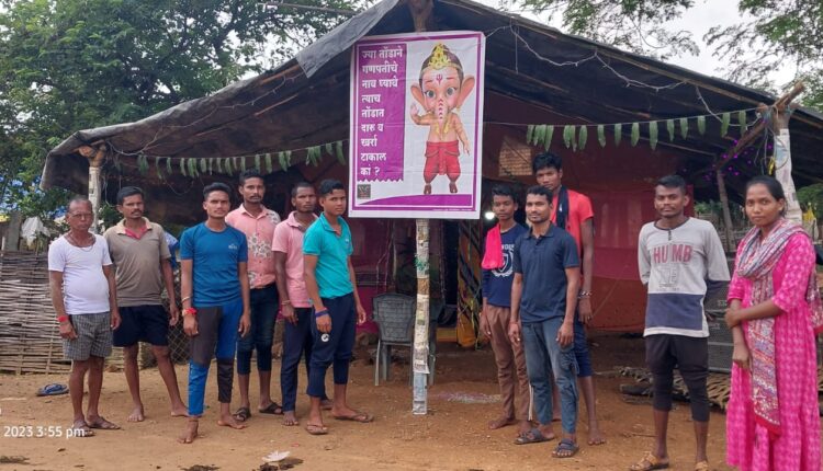 गडचिरोली, 21 सप्टेंबर : दारू व तंबाखूचे दुष्परिणाम लोकांना कळावे यासाठी गणेशोत्सवानिमीत्त मुक्तिपथ तर्फे भामरागड तालुक्यातील दुर्गम भागातील विविध गणेश मंडळांमध्ये बॅनर लावून जनजागृती करण्यात आली.