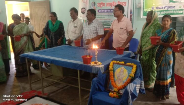 गडचिरोली, 23 ऑक्टोबर :- आयुर्वेदिक औषधी वनस्पतीचे आपल्या रोजच्या जीवनात मोठा उपयोग असून हर दिन हर घर आयुर्वेद संकल्पना व त्याचे महत्व डॉ. अंजली बोलगुलवार यांनी स्पष्ट केले. त्या राष्ट्रीय आयुर्वेद दिवस व भगवान धन्वंतरी जयंती कार्यक्रमात बोलत होत्या. आयुष आरोग्यवर्धिनी केंद्र तळोधी मो. येथे 22 ऑक्टोबर रोजी आयुर्वेद दिवस व भगवान धन्वंतरी जयंती कार्यक्रमाचे आयोजन करण्यात आले होते. कार्यक्रमाची अध्यक्षता प्रभारी सरपंच मनोहर बोद्दलवार यांनी केली.
