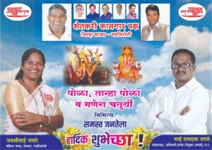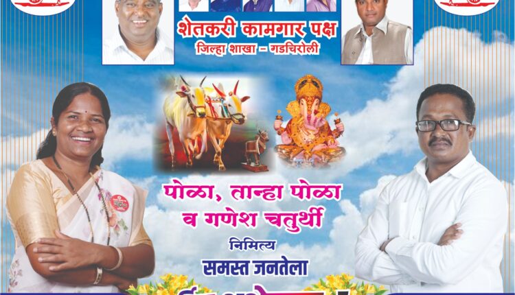 पोळा ताना पोळा व गणेश चतुर्थी निमित्त समस्त जनतेला हार्दिक शुभेच्छा..शुभेच्छुक : जयश्रीताई जराते, महिला नेत्या शेकाप, गडचिरोली,