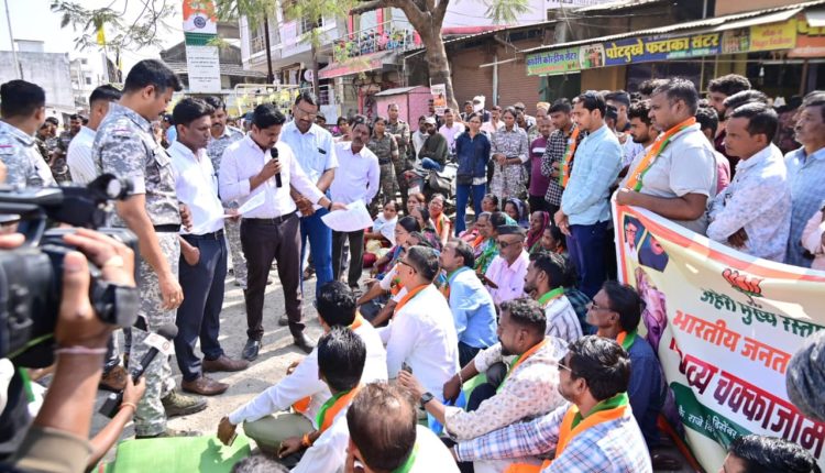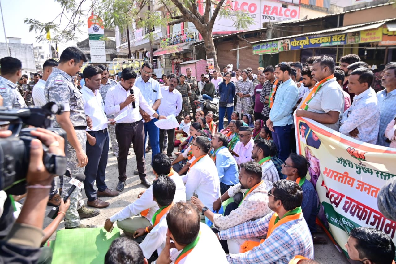 अहेरीच्या मुख्य रस्त्याच्या दुरुस्तीसाठी भाजपचे चक्काजाम आंदोलन