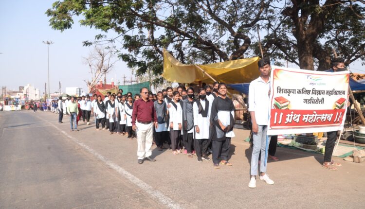 ग्रंथ दिंडीला प्रचंड प्रतिसाद : ग्रंथोत्सवाच्या उद्घाटनापुर्वी गडचिरोली शहरात ग्रंथ दिंडीचे आयोजन करण्यात आले होते. यावेळी शहरातील शिवाजी हायस्कुल, वसंत विद्यालय, नवजीवन, स्कुल ऑफ स्कॉलर्स, प्लॅटीनम, कारमेल, शिवकृपा, भगवंतराव हिंदी हास्कुल, जिल्हा कॉम्प्लेक्स, गोंडवाना सैनिकी, प्रज्ञा, रानी दुर्गावती, संत गाडगेबाबा आदी शाळांच्या विद्यार्थ्यांनी सहभाग घेतला. विद्यार्थ्यांनी संत, महात्मे तसेच विविध विचारवंताच्या वेशभुषेत दिंडीत सहभाग घेतला होता. यावेळी नागपूर विभाग ग्रंथालय संघाचे प्रमुख कार्यवाह भाऊराव पत्रे, जिल्हा ग्रंथालय संघाचे अध्यक्ष जगदिश म्हस्के, शिक्षणाधिकारी माध्यमिक राजकुमार निकम, जिल्हा ग्रंथालय अधिकारी रामदास साठे, प्रा.शेटे व विद्यार्थी मोठ्या संख्येने उपस्थित होते.