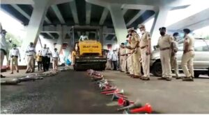 लोकस्पर्श न्यूज नेटवर्क ठाणे, दि. ९ जुलै : रस्त्यावरून पळणाऱ्या दुचाकी गाड्यांचे धडधडणारे सायलेंसर आणि कर्णकर्कश प्रेशर हॉर्न्स ने वरीष्ठ नागरिक आणि तान्ह्या बाळांचे जिणं मुश्किल झाले असून त्यामुळे अनेक व्याधी जडत असल्याच्या तक्रारी प्राप्त झाल्याने ठाण्याच्या वाहतूक पोलिसांनी एक धडक मोहीम हाती घेतली आहे. दिनांक १५ जून २०२१ पासून सुरु झालेल्या या मोहिमेअंतर्गत आत्तापर्यंत … Continue reading ३५० सायलेंसर आणि प्रेशर हॉर्न्स वर फिरला बुलडोजर; ठाणे वाहतूक विभागाची धडक कारवाई