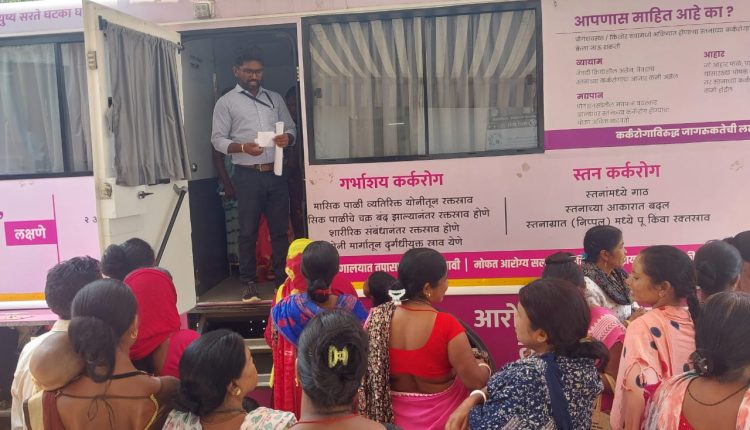 दिनांक 4 फेब्रुवारी 2025 पासून सुरु झालेल्या कर्करोग जनजागृती व तपासणी मोहिमेअंतर्गत गडचिरोली जिल्यामध्ये दिनांक 22 मार्च ते 30 एप्रिल 2025 या कालावधीत कर्करोग तपासणी वाहन संपूर्ण जिल्यामध्ये फिरणार आहे.या वाहना मध्ये गर्भाशयमुखाचा कर्करोग, स्तनाचा कर्करोग व मुखाचा कर्करोग इत्यादी तपासणी तज्ञांच्या मार्गदर्शनाखाली मोफत करण्यात येणार आहे. तरी 30 वर्षा वरील जास्तीत जास्त लोकांनी या आपल्या तपासण्या करून कर्करोग मुक्त जीवन जगावे असे आवाहन मुख्य कार्यकारी अधिकारी श्री सुहास गाडे यांनी केले आहे.