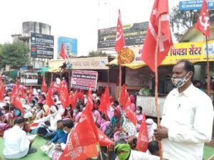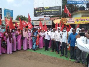 अखिल भारतीय किसान समन्वय समितीतर्फे मागील सात महिन्यांपासून दिल्लीच्या सीमेवर सुरू असलेल्या किसान आंदोलन ची राष्ट्रपतींनी दखल घ्यावी व शेतकरी विरोधी तीन आणि कामगार विरोधी चार कायदे तात्काळ मागे घ्यावेत या प्रमुख मागणीसाठी भारतीय कम्युनिस्ट पक्ष, शेतकरी कामगार पक्ष आणि आयटक यांनी सहभागी होत आजचे आंदोलन करण्यात आले.