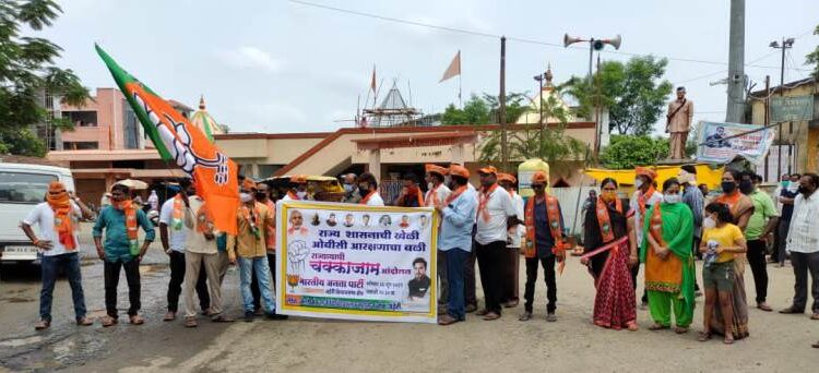 यावेळी राज्य सरकार विरोधात भाजपा कार्यकर्त्यांकडून प्रचंड नारेबाजी करत निषेध व्यक्त करण्यात आला.