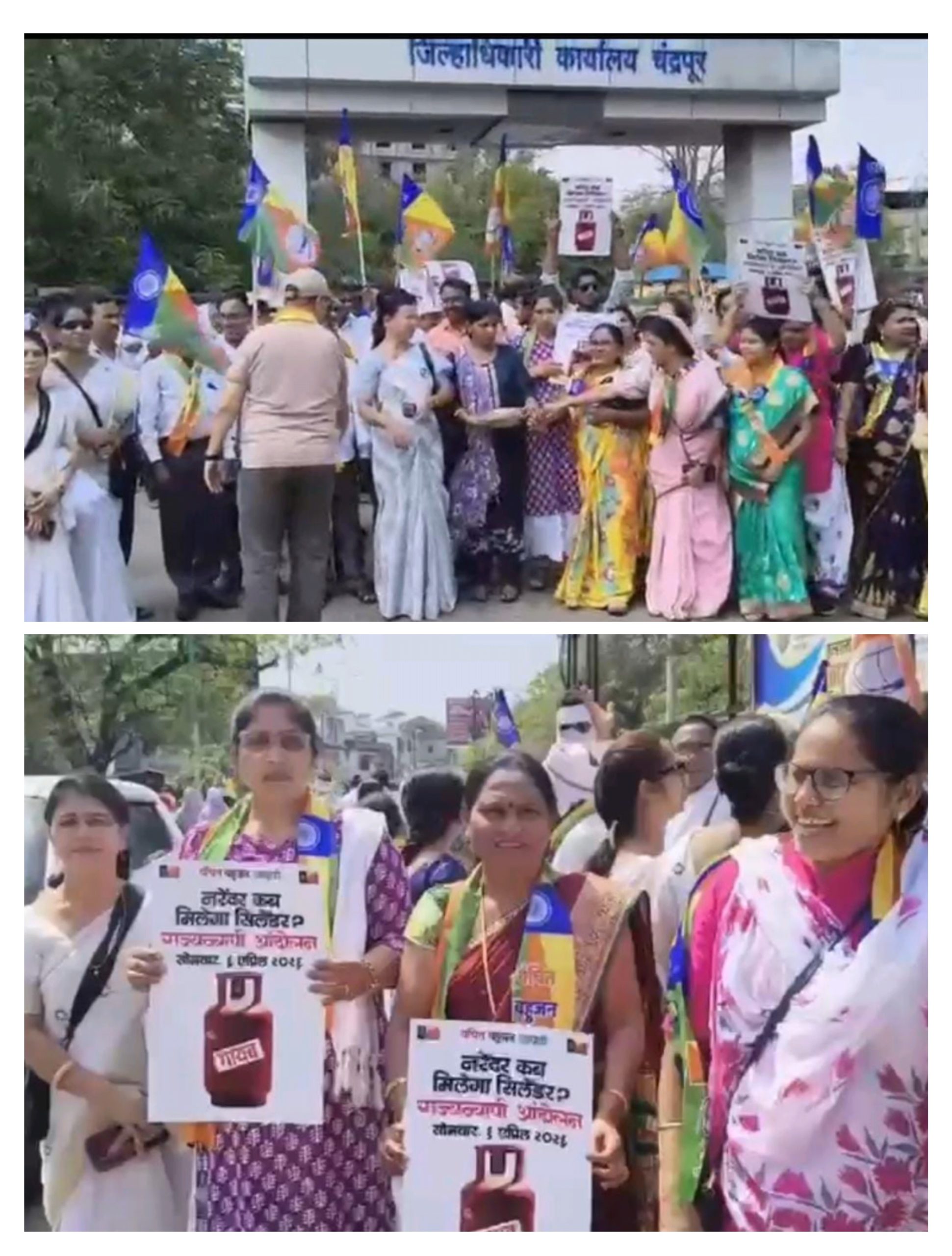 चंद्रपूर : घरगुती गॅस सिलेंडरच्या तीव्र टंचाईमुळे सामान्य नागरिकांचे जनजीवन विस्कळीत होत असताना, या प्रश्नाकडे सरकारचे लक्ष वेधण्यासाठी वंचित बहुजन आघाडीच्या वतीने जिल्हाधिकारी कार्यालयासमोर जोरदार आंदोलन छेडण्यात आले. महिला आघाडीच्या जिल्हाध्यक्ष तनुजा रायपुरे यांच्या नेतृत्वात झालेल्या या आंदोलनात कार्यकर्त्यांनी थेट चुली पेटवून स्वयंपाक करत प्रतिकाराची ठिणगी पेटवली.