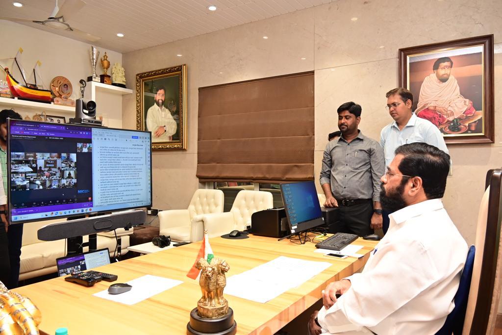 जलयुक्त शिवार 2.0, प्रधानमंत्री कृषि सिंचन योजना, गाळमुक्त धरण, गाळयुक्त शिवार या योजनासंदर्भात आज राज्यातील सर्व जिल्हाधिकारी, जलसंधारण आणि वन विभागाच्या अधिकाऱ्यांशी मुख्यमंत्र्यांनी ठाणे येथून दूरदृश्यप्रणालीद्वारे संवाद साधला. यावेळी राज्य उत्पादन शुल्क मंत्री शंभूराज देसाई हे मंत्रालयातून सहभागी झाले होते. आमदार महेश शिंदे, आमदार प्रकाश आबिटकर, ज्ञानराज चौघुले, मृद व जलसंधारण विभागाचे अपर मुख्य सचिव नंदकुमार, मृद व जलसंधारण आयुक्त मधुकर अरदड हेही दूरदृश्यप्रणालीद्वारे बैठकीस सहभागी झाले होते.