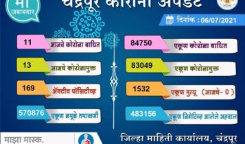 दिलासादायक! चंद्रपूर जिल्ह्यात आज मृत्यु शुन्यावर तर ॲक्टीव्ह रुग्णांची संख्या कमी