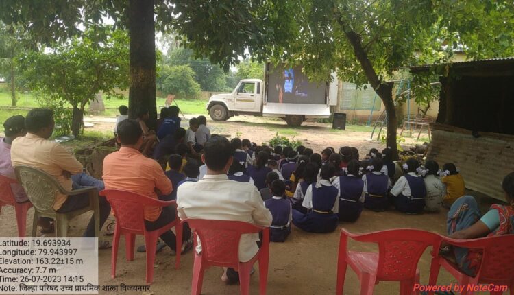व्हिडिओ व्हॅनने वेधले विद्यार्थ्यांसह ग्रामस्थांचे लक्ष