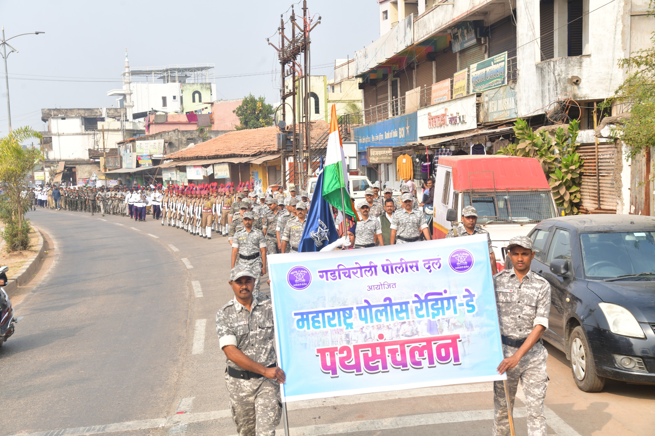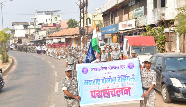 रेझिंग डे सप्ताहानिमित्त गडचिरोलीत शिस्तबद्ध पोलीस पथसंचलन
