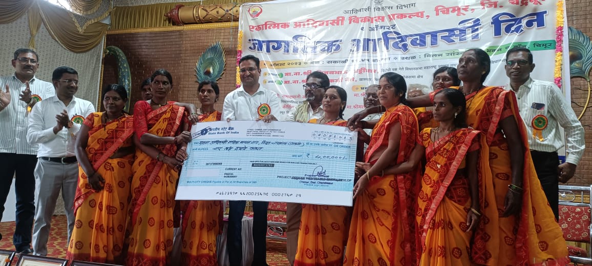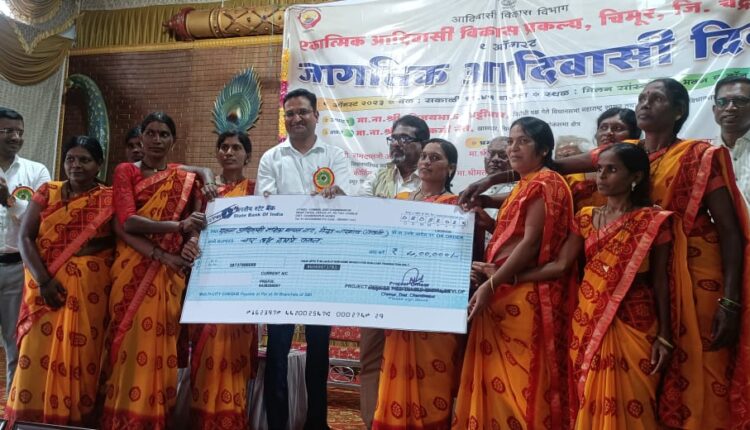 जागतिक आदिवासी दिनानिमित्त आदिवासी लाभार्थ्यांना धनादेश वाटप