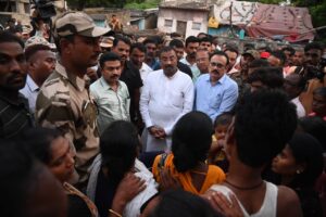चंद्रपूर, 28 ऑगस्ट :- घुग्गुस येथील आमराई वार्डात घडलेली भूस्खलनची घटना अतिशय गंभीर आहे. सुदैवाने यात कोणतीही जीवितहानी झाली नाही. मात्र परिसरातील इतर घरांनासुद्धा असा धोका राहण्याची शक्यता नाकारता येत नाही. भूस्खलनाचा धोका असलेल्या घरांना मुख्यमंत्री सहायता निधीतून तात्काळ 10 हजार रुपये देण्यात येईल, असे राज्याचे वने व सांस्कृतिक कार्यमंत्री सुधीर मुनगंटीवार यांनी सांगितले.