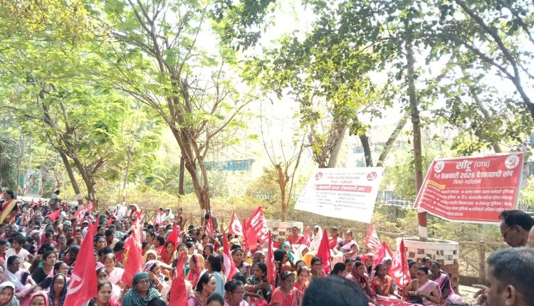 गडचिरोली: केंद्रीय कामगार धोरणांविरोधात देशभर पुकारण्यात आलेल्या एकदिवसीय सार्वत्रिक संपाला प्रतिसाद देत गडचिरोली येथे जिल्हाधिकारी कार्यालयासमोर हजारो कामगारांनी भव्य आंदोलन छेडत केंद्र सरकारच्या चार श्रमसंहितांविरोधात तीव्र संताप व्यक्त केला. विविध क्षेत्रातील सुमारे चार हजारांहून अधिक कामगार, अंगणवाडी सेविका, मदतनीस, आशा वर्कर, शालेय पोषण आहार कर्मचारी, अंशकालीन परिचर कर्मचारी तसेच शेतकरी व शेतमजूर मोठ्या संख्येने आंदोलनात सहभागी झाले होते. आंदोलनकर्त्यांनी कामगार विरोधी धोरणे तत्काळ मागे घ्यावीत, अन्यथा केंद्र सरकारला जनआंदोलनाच्या माध्यमातून मोठी राजकीय किंमत मोजावी लागेल, असा स्पष्ट इशारा दिला.
