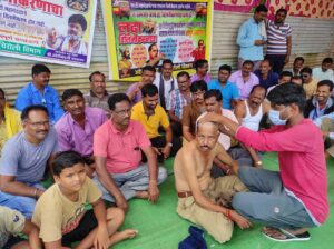 अहेरी, दि. १७ नोव्हेंबर : राज्य परिवहन महामंडळाच्या कर्मचाऱ्यांचे शासनात विलीनीकरण करून अन्य मागण्या मान्य करण्यात याव्या यासाठी राज्य परिवहन मंडळाचे कर्मचारी मागील अनेक दिवसांपासून बेमुदत आंदोलन करीत आहे. आता अहेरी येथील आंदोलनकर्त्यां कर्मचाऱ्यांनी स्वतःचे मुंडन करीत घेत शासनाचा निषेध व्यक्त केला आहे.