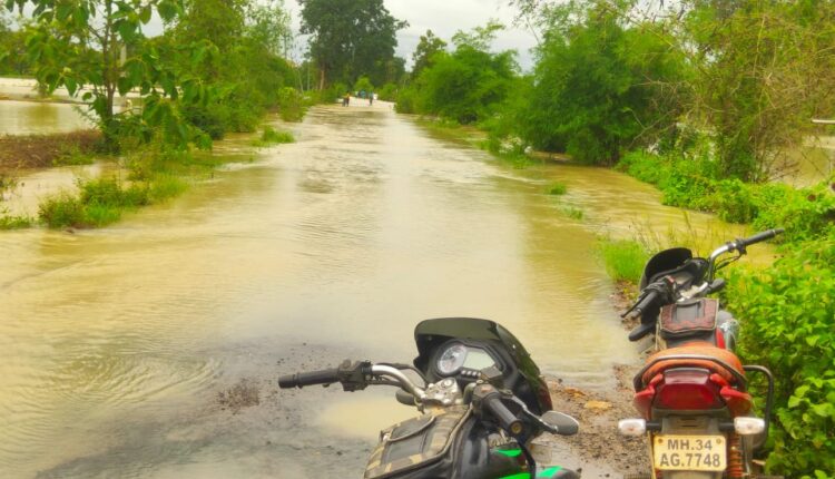 ७७ वर्षा नंतरही करावा लागतो मांडीभर पाण्यातून प्रवास..