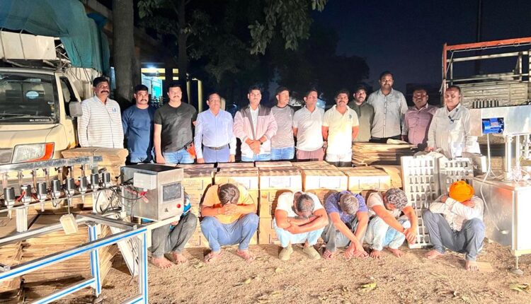 सदर दोन्ही ठिकाणहून १ चार चाकी वाहन व बनावट देशी मद्य (भिंगरी संत्रा) व मद्य निर्मिती करण्या करिता लागणारे साहित्य, मशीन व इतर असा एकुण रु 7,64,450/- इतका किंमतीचा मुद्देमाल जप्त करण्यात आला. सदर गुन्ह्यात आत्तापर्यंत पाच आरोपींना अटक करण्यात आली असून 1 आरोपी फरार आहे. त्यांचा शोध चालु आहे.