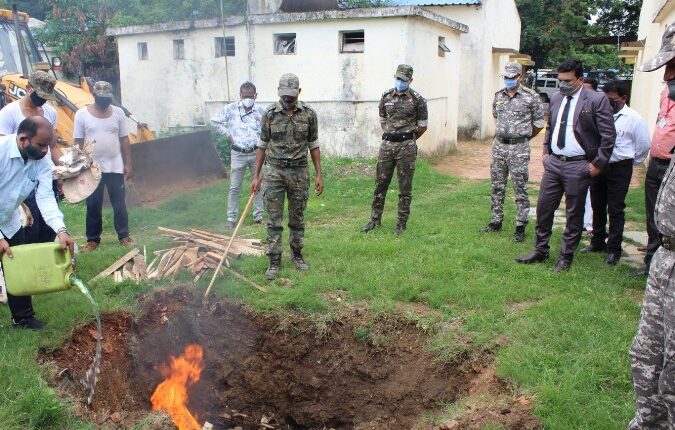 गडचिरोली जिल्हा पोलीस दलाकडुन ४ गुन्हयातील जप्त ३२ किलो गांजा करण्यात आला जाळून नष्ट