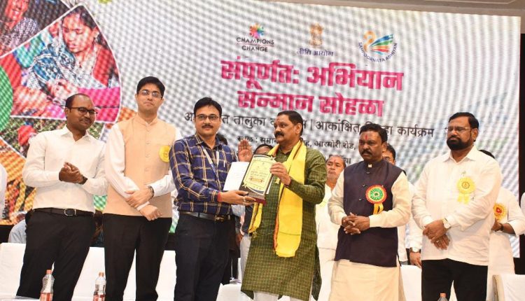 ‘संपूर्णतः’ मोहिमेअंतर्गत अहेरी तालुक्याने ६ पैकी ४, तर भामरागडने ६ पैकी ३ निर्देशांकांमध्ये १०० टक्के संपृक्तता साध्य केली. या कामगिरीसाठी अहेरीच्या गटविकास अधिकाऱ्यांना ‘कास्य’ आणि भामरागडच्या अधिकाऱ्यांना ‘ताम्र’ पदक प्रदान करण्यात आले. हा सन्मान डॉ. अशोक उईके यांच्या हस्ते देण्यात आला.