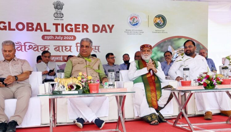 राष्ट्रीय व्याघ्र दिनानिमित्त वन अकादमी, चंद्रपूर येथे आयोजित कार्यक्रमात ते प्रमुख अतिथी म्हणून बोलत होते. यावेळी केंद्रीय पर्यावरण, वन आणि वातावरणीय बदल विभागाचे राज्यमंत्री आश्विनीकुमार चौबे, आमदार किशोर जोरगेवार, राष्ट्रीय व्याघ्र प्राधिकरणचे सचिव तथा अतिरिक्त महानिदेशक एस.पी.यादव, अतिरिक्त महासंचालक (वन्यजीव) विभाष रंजन, महाराष्ट्राचे वनबल प्रमुख डॉ. वाय.एल.पी.राव, महाराष्ट्राचे मुख्य वनसंरक्षक सुनील लिमये, अमित मलिक आदी उपस्थित होते.पंतप्रधान नरेंद्र मोदी यांच्या नेतृत्वात केंद्र सरकार, विकास, विज्ञान, व्याघ्र सुरक्षा, आदिवासींचे संरक्षण, अनुकूल वातावरण निर्मिती, जैवविविधता संरक्षण, जलवायू वाढविण्यासाठी उपाययोजना तसेच स्थानिकांना घेऊन वनांचे आणि पर्यावरणाचे संरक्षण या क्षेत्रात भरीव काम करीत आहे, असे सांगून केंद्रीय मंत्री श्री. भुपेंदर यादव म्हणाले, जगातील 75 टक्के वाघ भारतात सुरक्षित आहेत. देशात सद्यस्थितीत 52 व्याघ्र संरक्षण प्रकल्प असून यापैकी 17 प्रकल्पांना आंतरराष्ट्रीय दर्जा प्राप्त आहे. याचे श्रेय वन विभागासोबतच जंगलालगत राहणा-या लोकांनासुध्दा आहे. पर्यावरण बदलाच्या संदर्भात नवीन संशोधन आणि संकल्पना घेऊन आपल्याला वन क्षेत्रांचे संरक्षण करायचे आहे. केंद्र सरकारतर्फे वन्यजीव संरक्षण कायदा, जैवविविधता कायदा, वनहक्क कायदा याबाबत मोठे काम होत आहे. भारताची लोकसंख्या जगाच्या तुलनेत जवळपास 17 टक्के असून आपल्या देशात कार्बन उत्सर्जनाचे प्रमाण 4 टक्के आहे. तर आपल्यापेक्षा कमी लोकसंख्या असलेल्या देशांचे कार्बन उत्सर्जनाचे प्रमाण 60 टक्क्यांच्या जवळपास आहे.