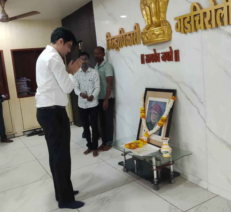 गडचिरोली : महात्मा जोतिराव फुले यांच्या जयंतीनिमित्त जिल्हाधिकारी कार्यालयात त्यांच्या प्रतिमेस पुष्पहार अर्पण करून अभिवादन करण्यात आले. जिल्हाधिकारी  अविश्यांत पंडा यांच्या हस्ते कार्यक्रम पार पडला.