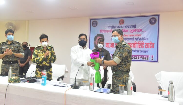 नक्षलवाद्यांशी लढणारया पोलीस जवानांना येल्चील पोलीस मदत केंद्र येथे पालकमंत्री एकनाथ शिंदे यांनी दिली दिवाळीनिमित्य भेट..