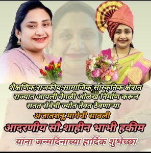 рдЕрдзреНрдпрдХреНрд╖ тАУ рджреГрд╖реНрдЯреА рдлрд╛рдЙрдВрдбреЗрд╢рди, рдЕрд╣реЗрд░реА, рддрд╕реЗрдЪ рдирд┐рд░реНрджреЗрд╢рдХ тАУ рдЕрдорд╛рди рдХрдиреНрд╕реНрдЯреНрд░рдХреНрд╢рди рдХрдВрдкрдиреА рдЪреЗ рд╕рд░реНрд╡реЗрд╕рд░реНрд╡рд╛ рд╕реМ. рд╢рд╛рд╣реАрдирдЬреАрдирд╛ рдЬрдиреНрдорджрд┐рдирд╛рдЪреНрдпрд╛ рдордирдГрдкреВрд░реНрд╡рдХ рд╢реБрднреЗрдЪреНрдЫрд╛…