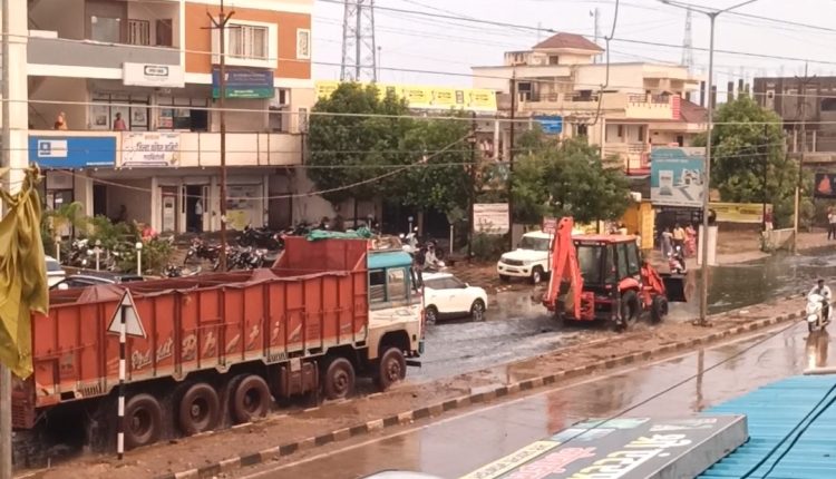 शहरात अनेक ठिकाणी रस्त्यावर पाणी.