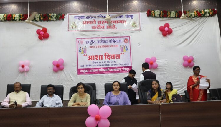 चंद्रपूर, 20 मार्च :- आशा दिनाचे औचित्य साधून चंद्रपूरच्या तालुका आरोग्य अधिकारी कार्यालयाच्या वतीने 18 व 19 मार्च 2023 रोजी कर्मवीर दादासाहेब कन्नमवार सभागृह, जिल्हा परिषद, चंद्रपूर येथे आरोग्याच्या रणरागिणीचा गौरव व विविध कार्यक्रम घेण्यात आले.