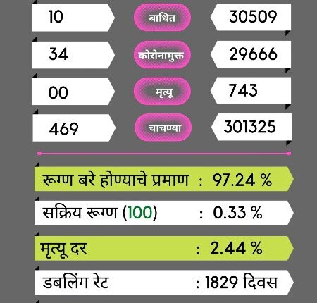 गडचिरोली जिल्ह्यात आज 34 कोरोनामुक्त तर 10 नवीन कोरोना बाधित