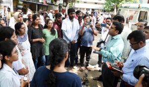 आंतरवासिता डॉक्टरांशी संवाद : तीन महिन्यांचे वेतन प्रलंबित असल्यामुळे संपावर असलेल्या आंतरवासिता डॉक्टरांशी जिल्हाधिका-यांनी संवाद साधला आणि त्यांच्या समस्या जाणून घेतल्या. आंतरवासिता डॉक्टरांचे प्रलंबित वेतन देयके कोषागार कार्यालयात सादर करण्यात आले आहे. एक-दोन दिवसांत वेतन अदा होईल, असे त्यांनी संपकरी डॉक्टरांना आश्वस्त केले. तसेच तातडीने कोषागार अधिका-यांशी दूरध्वनीवर संवाद साधून संबंधितांच्या खात्यात वेतन जमा करण्याच्या सूचनासुद्धा दिल्या. यापुढे वेतन प्रलंबित राहणार नाही, नियमित वेतन देण्यासाठी रुग्णालय प्रशासनाला सुचना करण्यात येतील. डॉक्टरांनी संप मिटवून त्वरीत कर्तव्यावर हजर व्हावे व रुग्णांना चांगली आरोग्य सेवा द्यावी, असे आवाहन जिल्हाधिका-यांनी केले.