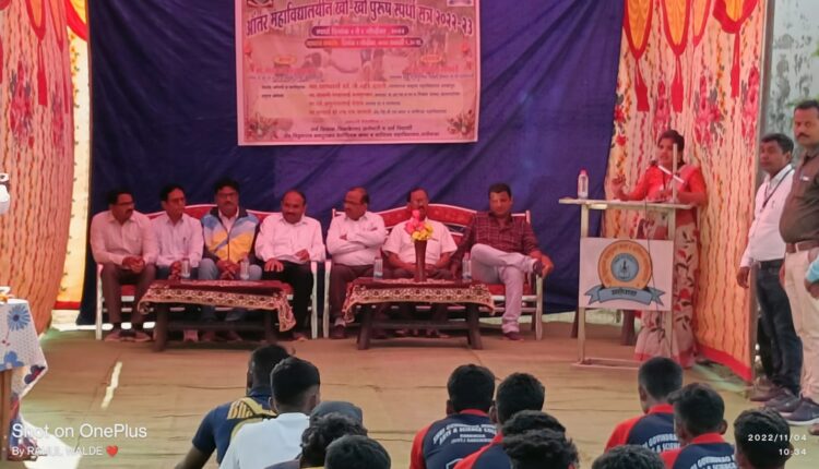 मालेवाडा, 06 नोव्हेंबर :- गोंडवाना विद्यापीठ गडचिरोली अंतर्गत ॲड. विठ्ठलराव बनपुरकर मेमोरियल कला व वाणिज्य महाविद्यालय मालेवाडा येथे आंतर महाविद्यालयीन पुरूष खो-खो स्पर्धेचे आयोजन करण्यात आले होते. या स्पर्धेचे उद्घाटन यशवंतराव चव्हाण महाविद्यालय प्राचार्य डॉ. जे.व्ही. दळवे यांच्या हस्ते संपन्न झाला. मार्गदर्शक म्हणून प्राचार्य डॉ. एच.एम. कामडी उपस्थित होते. कार्यक्रमाची अध्यक्षता संजीवनी आदिवासी जाती व मागासवर्गीय शिक्षण संस्था खरमतटोला चे सचिव सारंग बनपुरकर यांनी केली. प्रमुख अतिथी म्हणून मालेवाड सरपंच अनुसया पेंदाम, महाविद्यालय विकास समितीचे सदस्य सुधाकर भरणे, डॉ. ठाकरे, डॉ. अर्मरकर, डॉ. चाउके उपस्थित होते.