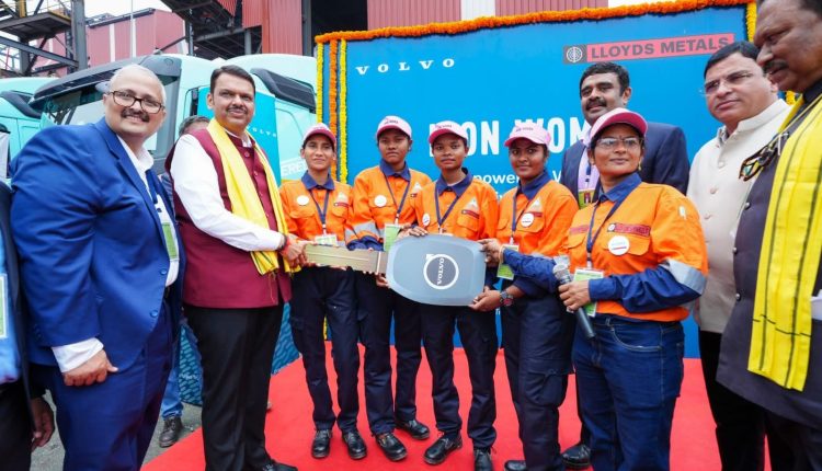 गडचिरोली (कोनसरी): एलएमईएल आणि व्होल्वो ट्रक्स इंडिया यांच्या संयुक्त उपक्रमातून सुरू झालेल्या ‘आयर्न वुमन’ कार्यक्रमाचे मुख्यमंत्री देवेंद्र फडणवीस यांच्या हस्ते औपचारिक उद्घाटन करण्यात आले. या उपक्रमांतर्गत आदिवासी महिलांना एलएनजीवर चालणाऱ्या अवजड ट्रक चालविण्यासाठी प्रशिक्षित करून औद्योगिक लॉजिस्टिक्समध्ये थेट सहभागी करून घेण्याचा क्रांतिकारी प्रयोग सुरू करण्यात आला आहे. यानुसार, नऊ एलएनजी ट्रक गडचिरोलीच्या कोनसरी येथून खनिज पेलेट घेऊन रवाना करण्यात आले असून, मुख्यमंत्री फडणवीस यांच्या हस्ते या पहिल्या खेपेला हिरवा झेंडा दाखवण्यात आला.