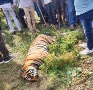 विद्युत प्रवाहाच्या धक्क्याने पट्टेदार वाघाचा मृत्यू.?