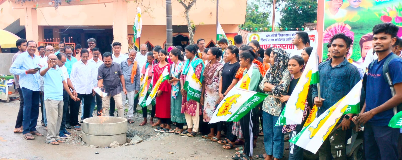 अहेरीत झालेल्या या आंदोलनात सेवानिवृत्त प्राचार्य नागसेण मेश्राम, विलास रापरतीवार, छत्रपती गोवर्धन, प्रकाश गुडेलीवार, रवी भांदककार, कवीश्वर गोवर्धन, सत्यनारायण गुप्ता, उमाजी गोवर्धन यांच्यासह अकॅडमीचे शिक्षकवृंद आणि गावकरी मोठ्या संख्येने सहभागी झाले. “विदर्भाचा प्रश्न निव्वळ आर्थिक नाही, तो आत्मसन्मानाचा आहे,” असे प्रा. मेश्राम यांनी ठासून सांगितले.