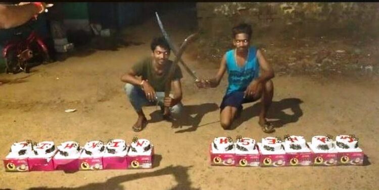 भंडारा तालुक्यातिल भोजापुर येथील सुभाष वार्डत संबधित घटना घडली असून ह्या प्रकरणी निखिल उर्फ निकेश अंकुश बावने वय 22 वर्ष व गणेश राजेश बागडे वय 20 वर्ष यांच्यावर भारतिय हत्यार कायदा 1959 कलम 5 ,25 नुसार गुन्हा दाखल करण्यात आला आहे. दोन्ही तलवारी जप्त करण्यात आल्या आहे.