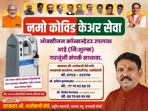 गडचिरोली : खा. अशोकजी नेते यांचे जनसंपर्क कार्यालय, चामोर्शी रोड, गडचिरोली येथे ऑक्सिजन कान्सट्रेटर मशीन उपलब्ध आहेत. ज्या गरजू नागरिकांना किंवा कोविड बाधीत मात्र होम आयसोलेशन मध्ये असलेल्या नागरिकांना ऑक्सिजन लागत असल्यास संपर्क साधावा. व या निःशुल्क सेवेचा लाभ घ्यावा, असे आवाहन भारतीय जनता पार्टीच्या वतीने करण्यात आले आहे.