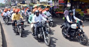 अमृत कलश बाईक रॅलीचा शुभारंभ : ‘मेरी माटी मेरा देश’ या कार्यक्रमाच्या समारोपाच्या निमित्ताने जिल्हा परिषद चंद्रपूर येथून बुधवारी (दि.२३) अमृत कलश घेऊन विशेष बाईक रॅली काढण्यात आली. यावेळी जिल्हाधिकारी विनय गौडा यांनी दुचाकी चालवित अमृत कलश रॅलीचा शुभारंभ केला. या रॅलीमध्ये जिल्हाधिकाऱ्यांसह मुख्य कार्यकारी अधिकारी विवेक जॉन्सन, उपमुख्य कार्यकारी अधिकारी कपिल कलोडे, श्याम वाखर्डे, पंचायत समितीचे गटविकास अधिकारी आशुतोष संपकाळ, प्रत्येक ग्रामपंचायतचे सरपंच, उपसरपंच, ग्रामसेवक, जिल्हा परिषद, पंचायत समितीचे अधिकारी व कर्मचारी सहभागी झाले होते. ही रॅली जटपुरा गेट- बंगाली कॅम्प येथून डॉ. ए.पी.जे अब्दुल कलाम गार्डनच्या दिशेने मार्गस्थ झाली होती.