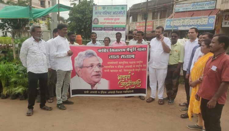आरमोरी: मार्क्सवादी कम्युनिस्ट पक्षाचे महासचिव माजी राज्यसभेत खासदार कॉम्रेड सिताराम येचुरी यांना आरमोरीत डाव्या आघाडीच्या व इंडिया आघाडीचा वतीने शिहिद भगतसिंग चौकात आदरांजली वाहण्यात आली.कॉम्रेड. सिताराम येचुरी हे भारताच्या राजकारणातील एक मोठ चेहरा होते. त्याची राजकीय वाटचाल विद्यार्थी असतांनाच सुरू झाली होती. ते विद्यार्थी आंदोलनात सक्रिय होते. भारतातील सामाजिक, आर्थिक विषयांवर त्याचा दांडगा अभ्यास होता. राहुल गांधी सारखे राष्ट्रीय नेते सुध्दा देशातील समस्यावर त्याच्या शी चर्चा करायचे. त्यांच्या मुत्यू मुळे डाव्या पक्षांनी मोठी हानी झाली आहे. मुत्यु नंतर त्याचा देह एम्स रुग्णालयात दान करण्यात आले.