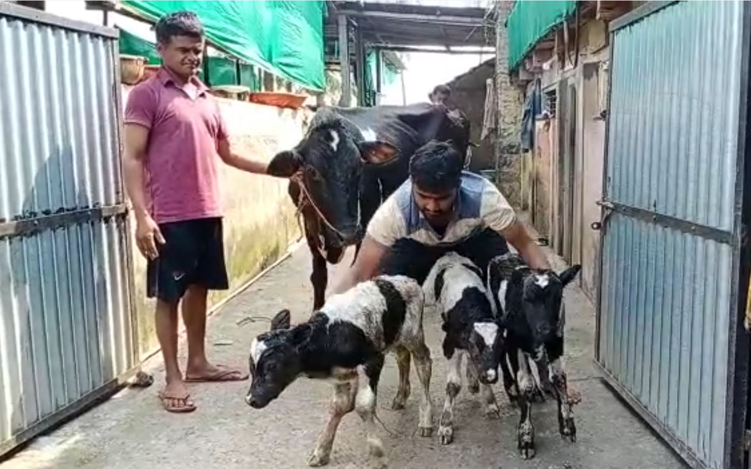 सांगली जिल्ह्यात गाईने एकाच वेळी तीन वासरांना जन्म दिला.